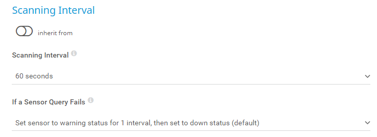 Select the number of scanning intervals that the sensor has time to reach and to check a device again if a sensor scanning fails. Depending on the option that you select, the sensor can try to reach and to check a device again several times before the sensor shows the Downstatus. This can avoid false alarms if the target device only has temporary issues. For previous scanning intervals with failed requests, the sensor shows the Warning status.