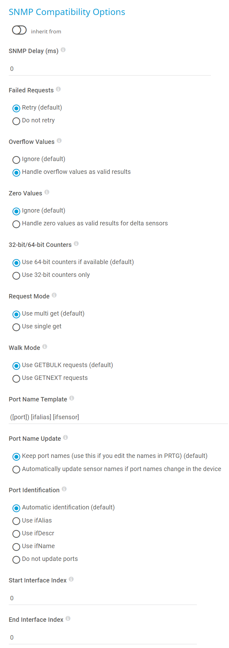 The System Information feature is enabled by default. To retrieve the data, PRTG automatically uses the credentials for Windows systems and the credentials for SNMP devices that you entered in the device settings or that the device inherits from a parent object like the root group. Consider this when you monitor devices that are outside of your local network, especially when you use SNMP v1 or SNMP v2c, which do not provide encryption.