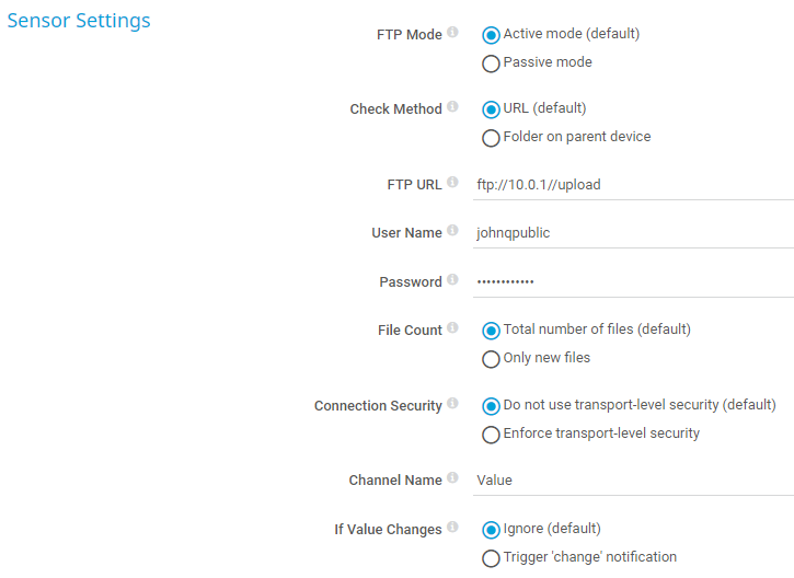 Enter the URL that this sensor checks. The URL can look like this: ftp://10.0.0.1/upload