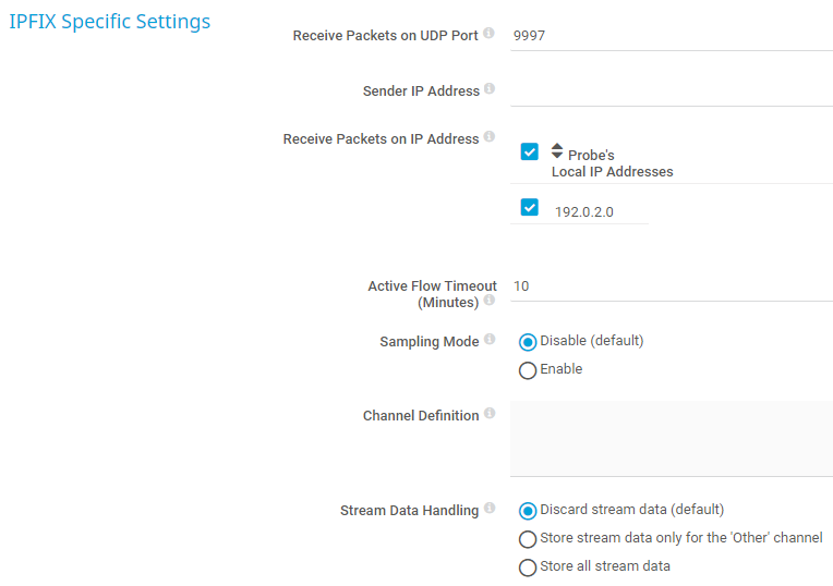 Enter the IP address of the sending device that you want to receive the IPFIX data from. Enter an IP address to only receive data from a specific device or leave the field empty to receive data from any device on the specified port.