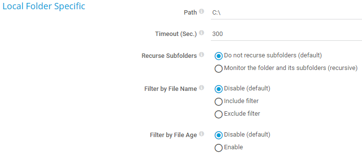 • Do not recurse subfolders (default): Only monitor the folder. Do not monitor its subfolders.
