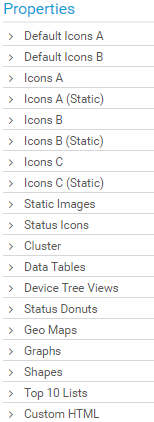 Use the Properties section to define how to display the map item, for example, as an icon, a map, a table, or a graph. Select the appearance of a map item from different categories.