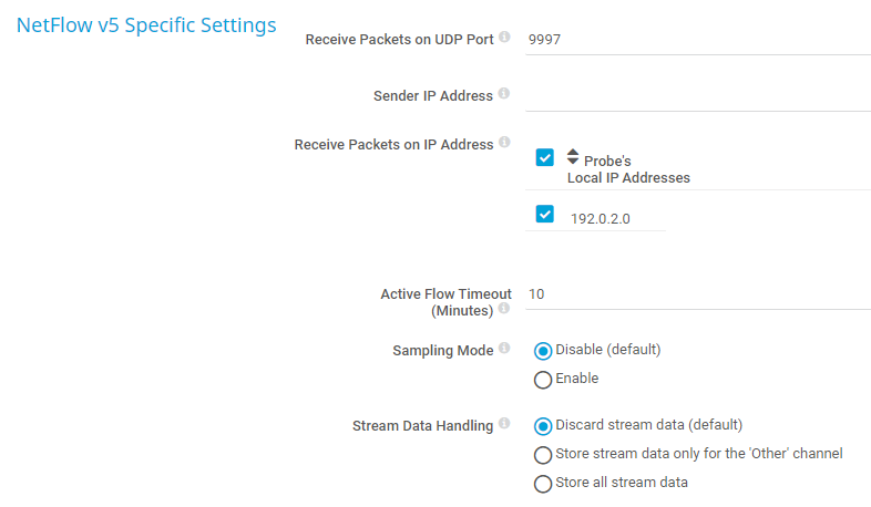NetFlow v5 Specific Settings