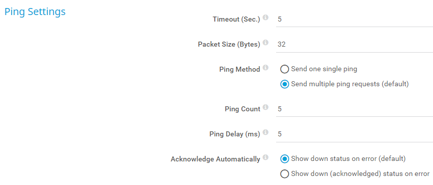 i_round_blueIf you select this setting, all of the ping requests must be lost for the sensor to show the Down status. For example, if only one ping request is answered in a series of five, the sensor still shows the Up status.
