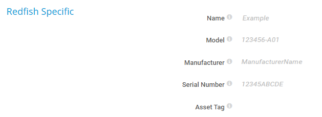 i_round_blueThe information in the Redfish Specific settings reflects the status of the system at the time of sensor creation. If any setting changes after creation, the Redfish Specific settings do not reflect the change. Add the sensor anew to update the displayed settings.